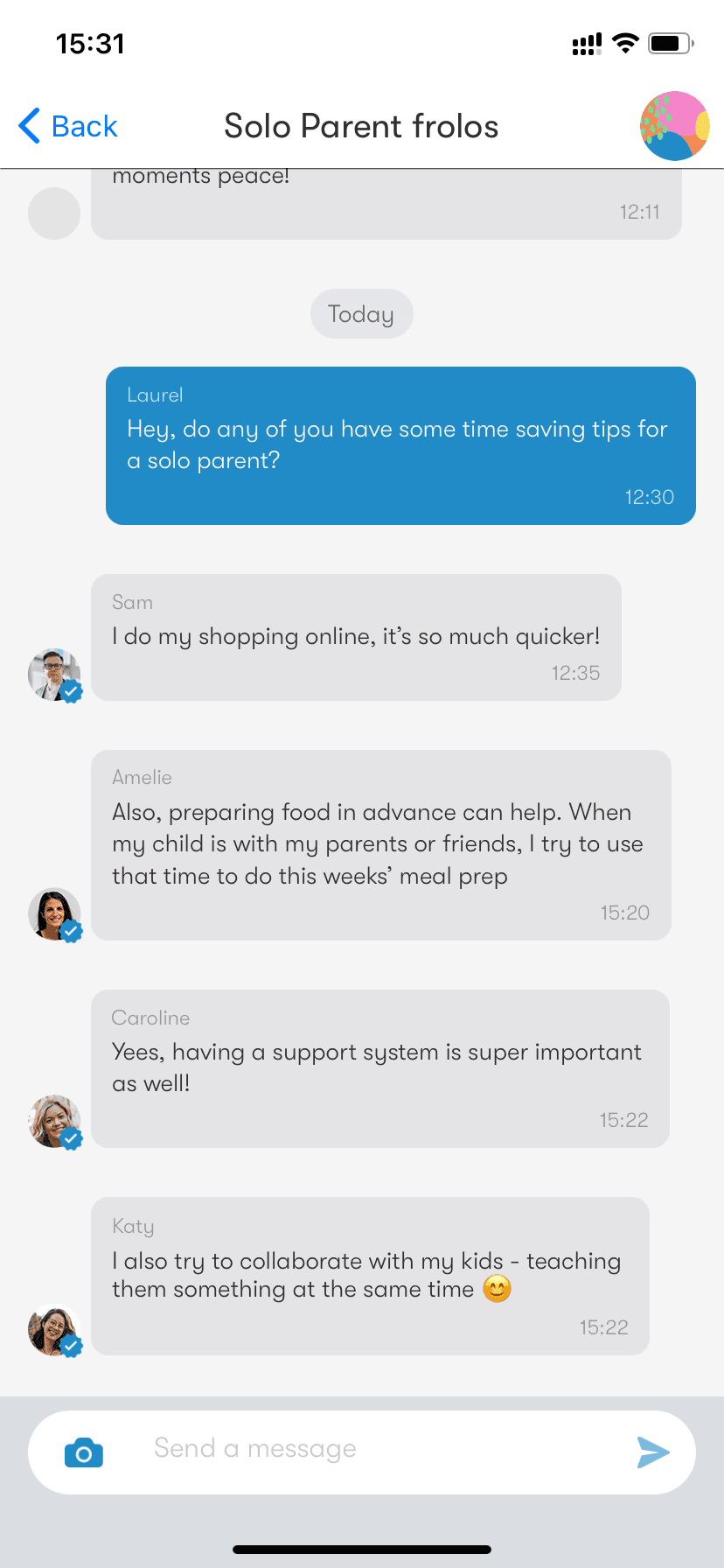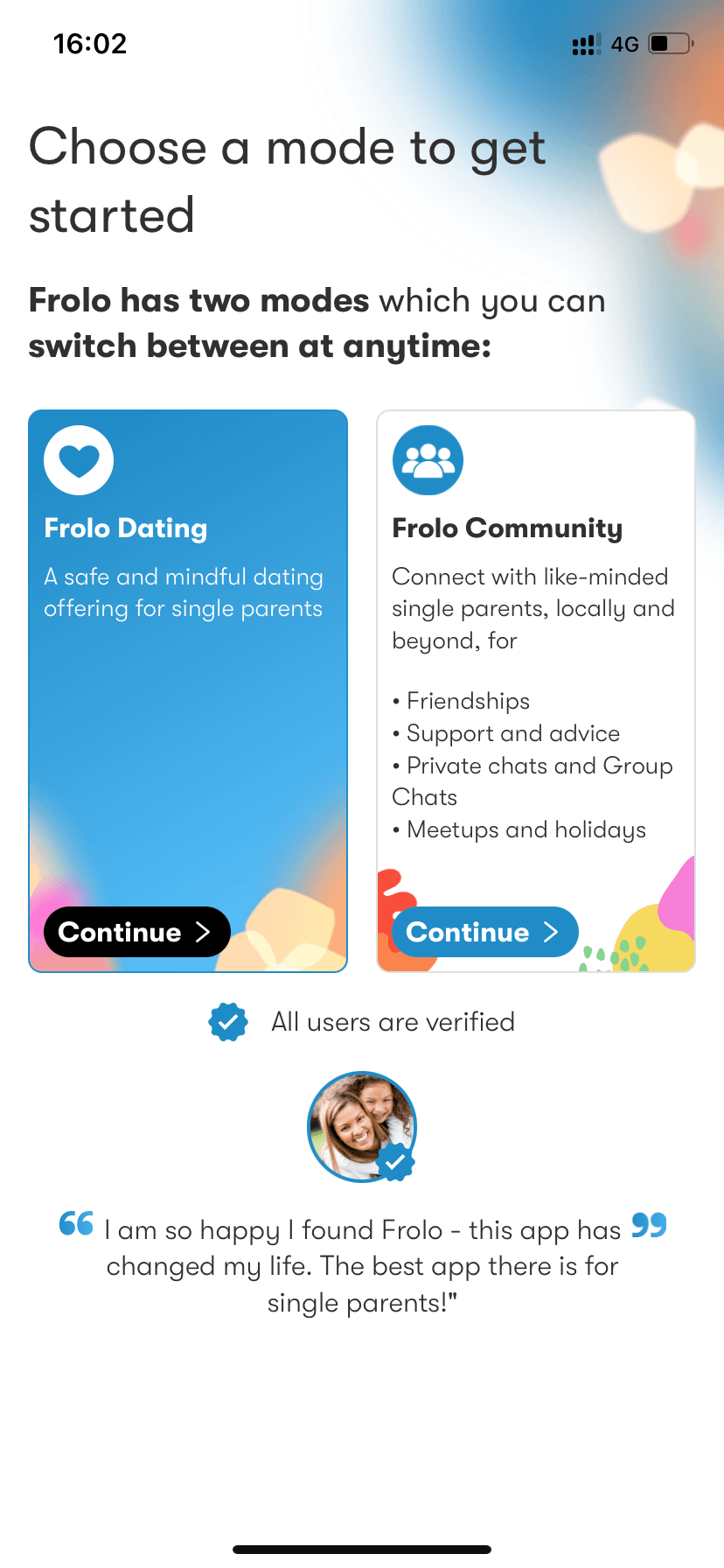 Frolo is the all-in-one resource for single parents, with a wide range of features including a community forum, dating, meetups, a friend finder, and chats, all brought together in a single cohesive native mobile app.