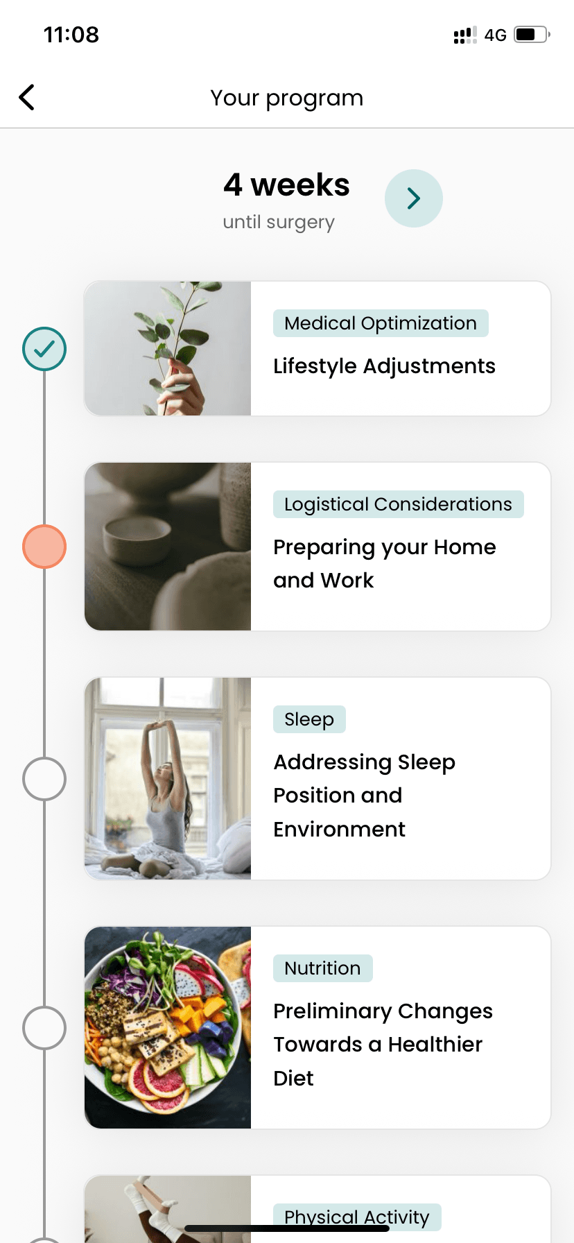 We collaborated closely with their team to build the app from the ground up. Our team designed an accessible interface and handled the end-to-end development of the mobile app. The final product integrates evidence-based content, Prehab and Rehab programs, and community features, all designed to guide users confidently through their surgical journey.